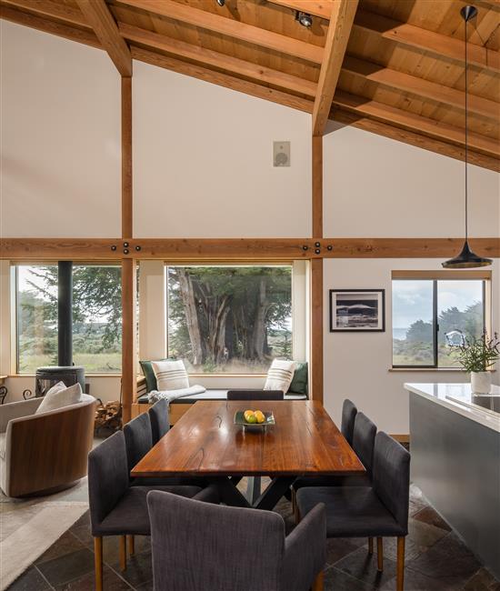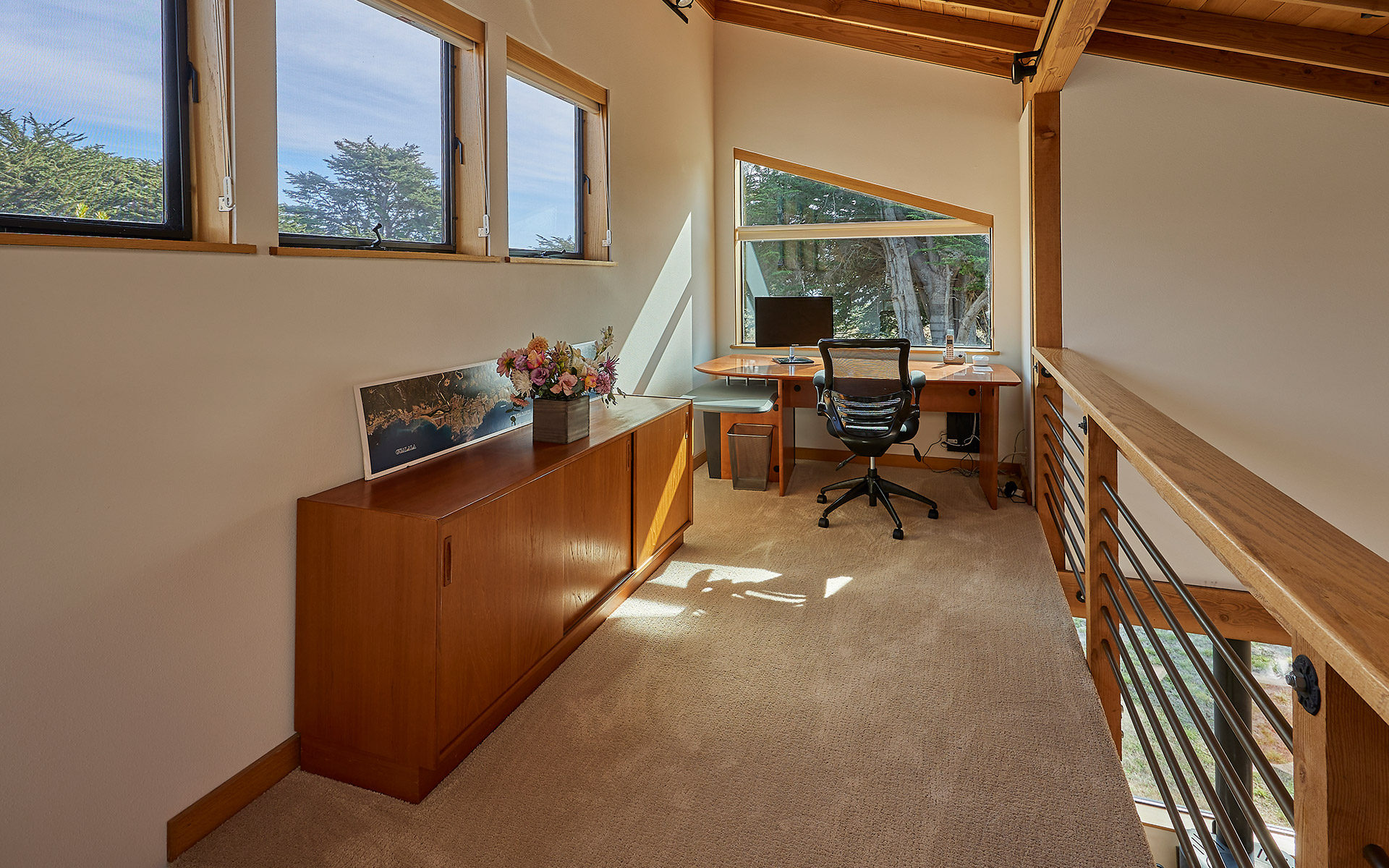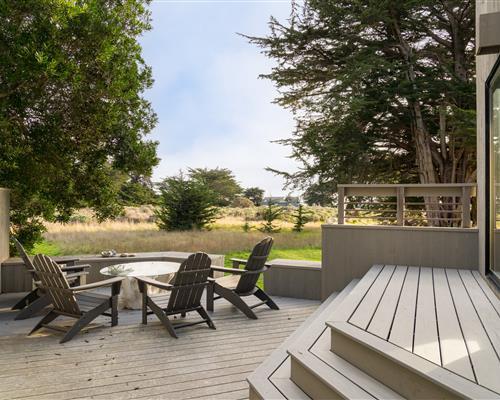 The home features 2 master suites. One master king suite sits alone on the second floor with a loft office area, step-out ocean view balcony, and the oversized bathroom and stone shower create a lux retreat. The 2nd king accommodations are on the lower entry floor, sun-filled and again boasting water and meadow views. This king bedroom connects to a beautiful full bathroom with a stone shower that would be shared with the 3rd bedroom. The 3rd queen bedded guest room on the opposite side of the home has one of the best views of the Pacific; though more intimate, it offers a wonderful retreat and conveniently sits across from a half bath. Enjoy a meadow setting with a Pacific view hot tub to soak away a chilly Sea Ranch morning or be amazed at our star-filled nights. Newly remodeled kitchen featuring Miele and Wolf appliances, updated baths, a private hot-tub deck with ocean views, and a fully enclosed courtyard garden.