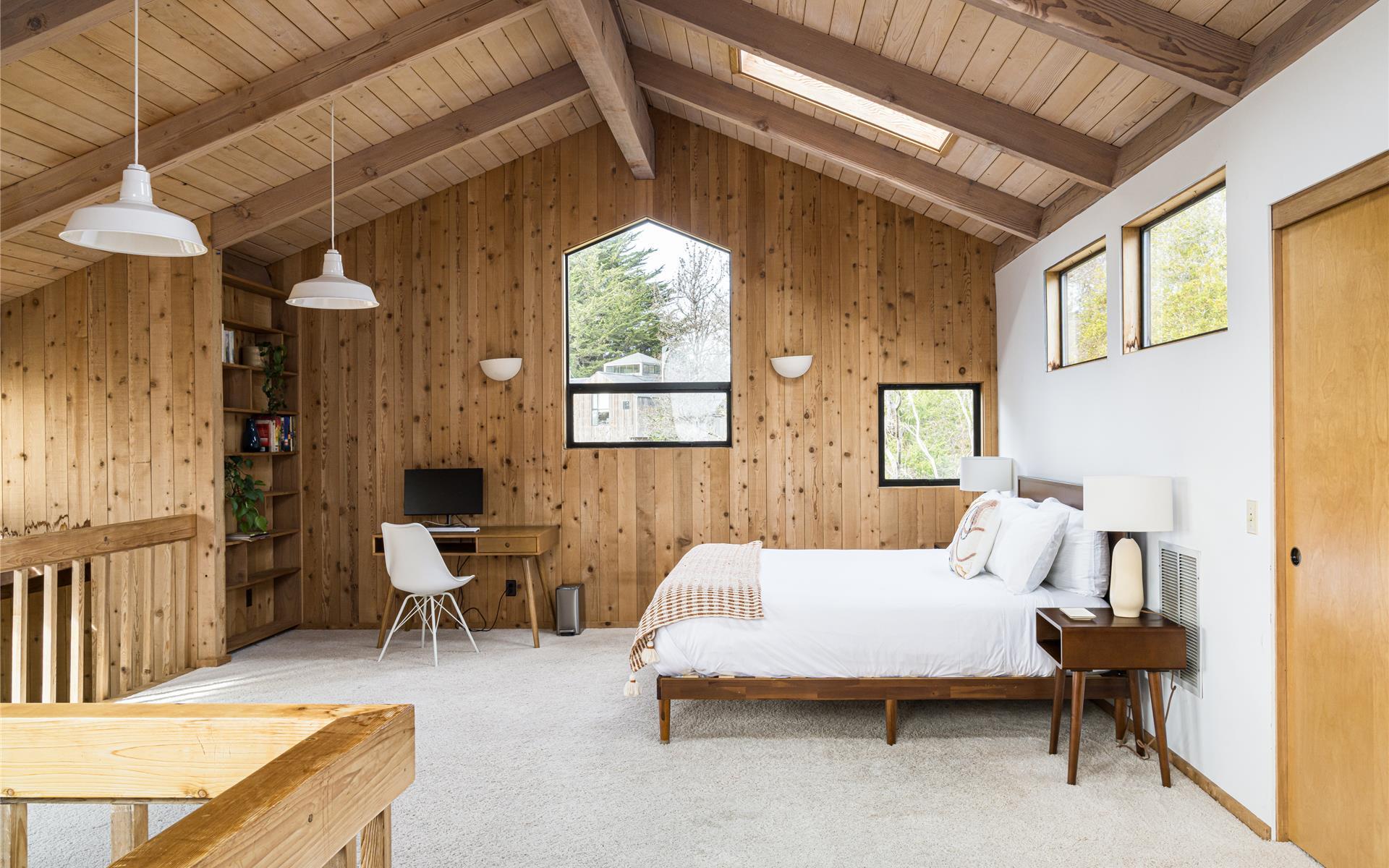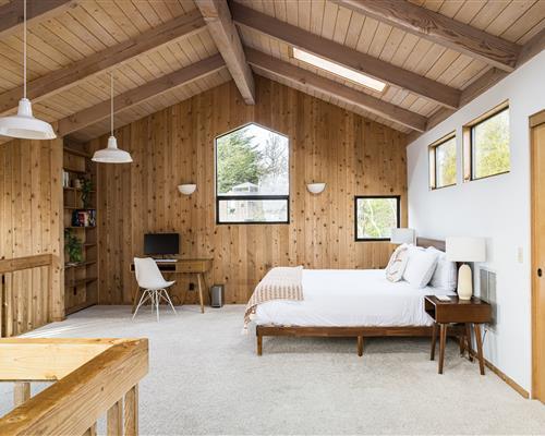 Bedroom 3: Loft with king bed and ocean views. Please note there are minimal window coverings due to unique window installation.